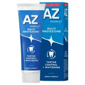 AZ Multi-Protezione Tartar Control+Whitening è una pasta dentifricia creata per eliminare delicatamente la placca dai denti e dai bordi gengivali, andando a contrastare la formazione del tartaro. Mantiene il naturale bianco dei denti e riduce le macchie provocate da fumo, vino e caffè.