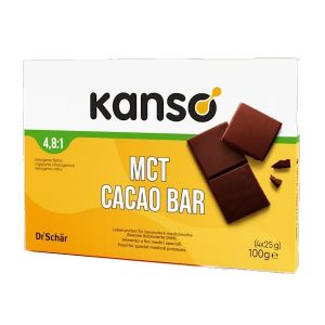 Il Kanso Delimct Cacao Bar 21% è una tavoletta di cioccolato pensata per chi segue una dieta chetogenica. Contiene cacao e acidi grassi a catena media, ideali per fornire un apporto energetico specifico. Prodotto da DR.SCHAR, è disponibile in confezioni con quattro monoporzioni da 25 grammi ciascuna.