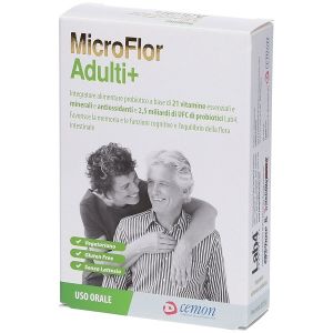 Microflor Adulti+ 30 Capsule Vegetali è un integratore a base di probiotici potenziato con 21 vitamine essenziali, minerali e antiossidanti, specificamente formulato per soddisfare le esigenze nutrizionali delle persone over 50. Favorisce l'equilibrio della flora intestinale ed è adatto ai vegetariani.