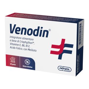 Venodin Integratore alimentare utile per il trofismo del microcircolo e per il controllo dei livelli di omocisteina. Criophython™: Diosmina: è una sostanza efficace per favorire la corretta permeabilità venulo-capillare mediante l’aumento del tono venoso. Esperidina: è una sostanza che agisce favorendo la resistenza della parete venulocapillare. Meliloto estratto secco: l'estratto titolato in Cumarina (5,6-benzo-α-pirone) è un ottimo antiossidante, favorisce il trofismo del microcircolo e il drenaggio dei liquidi corporei, favorisce la corretta permeabilità capillare e aiuta a mantenere la fisiologica fluidità del sangue. Vitamina E: è una vitamina liposolubile dotata di un ottimo potere antiossidante che protegge le cellule dall’azione dannosa dei radicali liberi. Vitamine B6, B12 e Acido Folico: il complesso di queste vitamine permette di mantenere il normale livello di omocisteina nel sangue. L'Acido Folico è indicato nella prevenzione di alcuni difetti congeniti; diminuisce il rischio di difetti del tubo neurale e, forse, di altre malformazioni congenite.